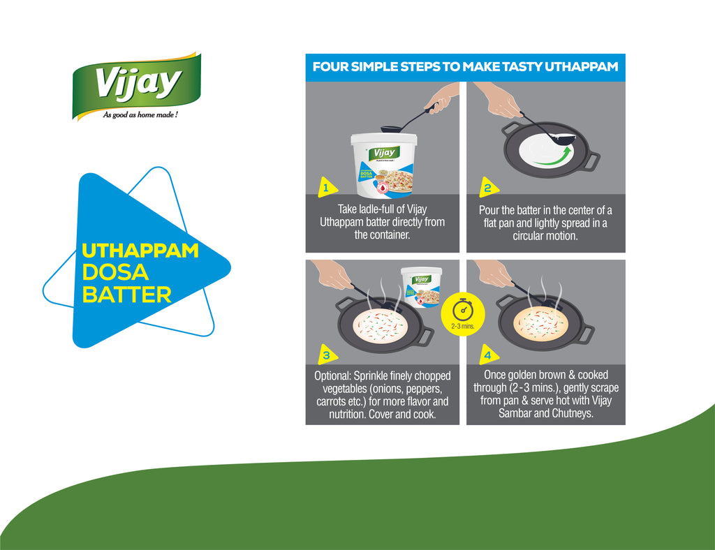 Uthappams are a delicacy in the South of India. Thick and mildly spongy, they are made to suit the tastes & preferences of everyone. And most importantly, the toppings such as tomatoes, onions, shredded carrots or beets and coriander add to the flavor of the Uthappam.